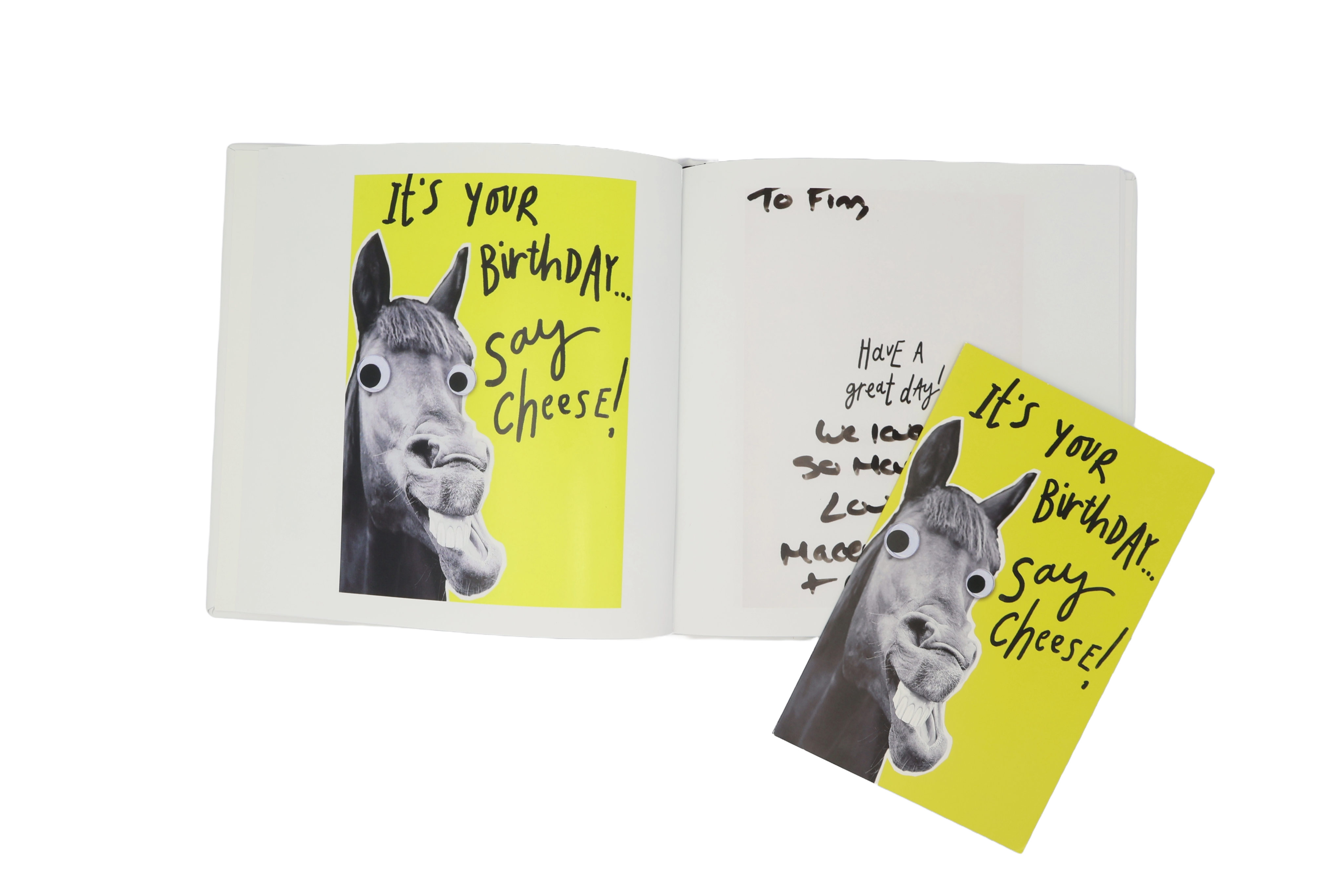 We'll then craft a thoughtful, classic book design. We highlight the card cover on one page and the inside of the card on the opposite page.